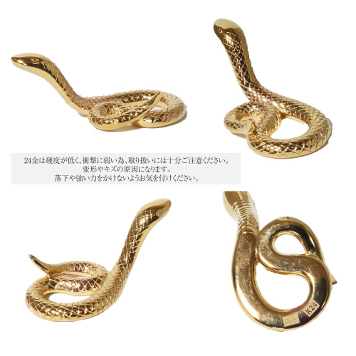 昔から幸運の象徴と言われている蛇(ヘビ)を24金で作り上げました。
