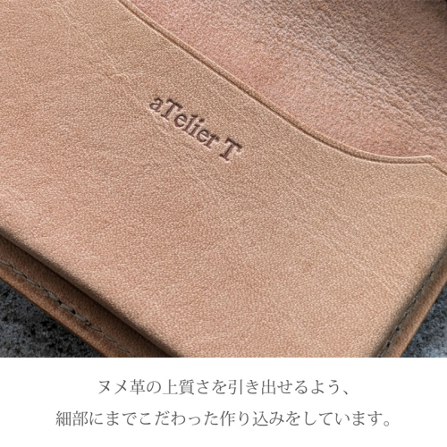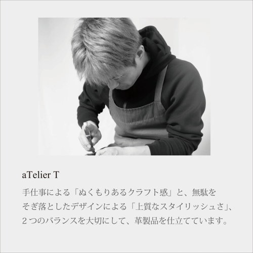 「革の中の革」といわれているタンニン鞣しのヌメ革にオイルをたっぷりと加えたaTelier Tのオリジナルレザーを使っています。