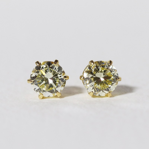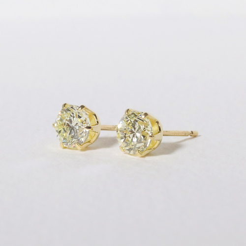 ・K18 イエローダイヤモンド 1.00ct 6本爪スタッドピアス