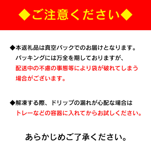 ・解凍する際は、ドリップ等が漏れる心配がございますので、トレーなど容器にいれて解凍してください。