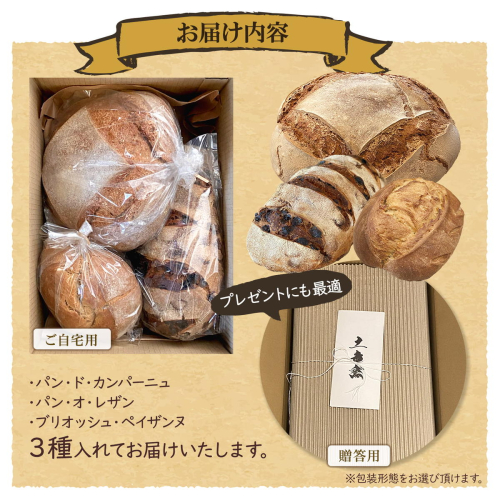 - 【薪窯焼き】香り高い大きなパン 3種セット (カンパーニュ・レザン・ブリオッシュ) ハード系パン レーズン パン セット K2686