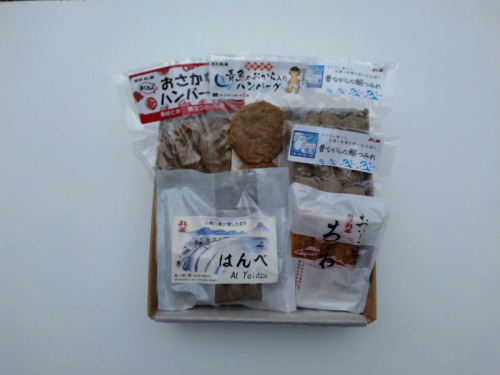 【内容】はんべ At Yaidzu:3枚入×2袋、昔ながらの鰯つみれ:9個入×2袋、おさかなハンバーグ:3枚入×1袋、青さかなのおから入りハンバーグ:2枚入×1袋、ちくわ:3本入×1