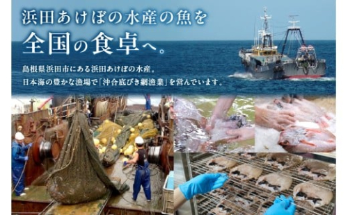 浜田市の沖合底びき網漁業者である(株)浜田あけぼの水産が、漁獲から加工まで一貫して生産した商品です。