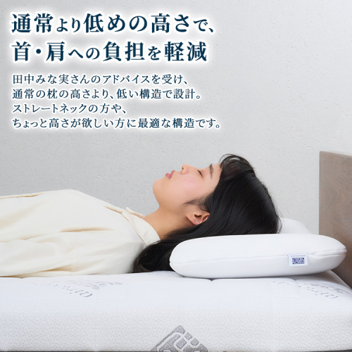 ストレートネックの方や、枕は使わないけれどちょっと高さが欲しい方に、通常の枕より薄めで、仰向けで寝たとき首や肩への負担が少ない設計です。
