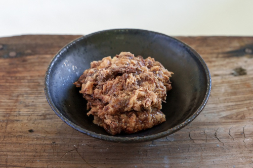 そして、もう一方は赤身肉50%と血合肉50%を使用した栄養強化版です。猫の必須アミノ酸のタウリン、猫の毛艶や皮膚の健康維持に効果があると言われているコラーゲンを配合しました。1袋400gのレトルトパウチタイプになっていますので、大家族にもうれしいサイズです。