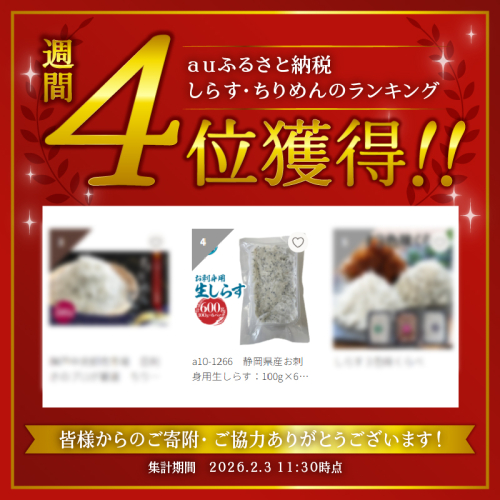 a10-1266 静岡県産お刺身用生しらす:100g×6パック 合計600g