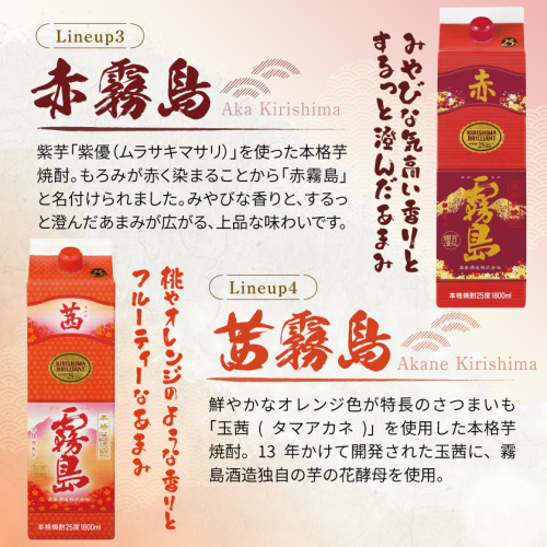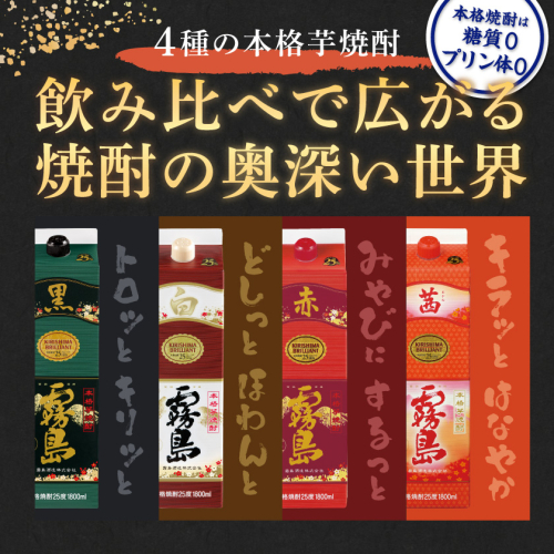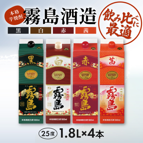 霧島酒造「赤・茜・黒・白」パック(25度)1.8L×4本_22-19-006 2502804 - 宮崎県都城市