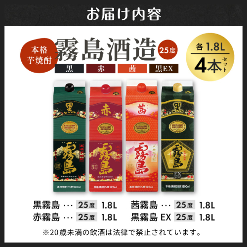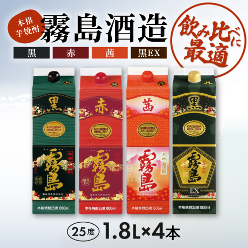 霧島酒造「赤・茜・黒・EX」パック(25度)1.8L×4本_22-19-009