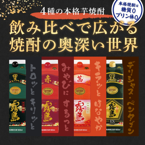 霧島酒造「赤・茜・黒・EX」パック(25度)1.8L×4本_22-19-009 2502808 - 宮崎県都城市