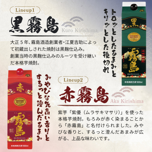 • 霧島酒造「赤・茜・黒・EX」パック(25度)1.8L×4本_22-19-009