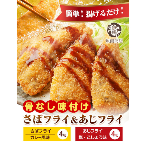 - 簡単!揚げるだけ! 骨なし味付け さばフライ4切 あじフライ4切 (カレー風味 塩・こしょう風味) 株式会社 魚鶴商店《30日以内に出荷予定(土日祝除く)》 和歌山県 日高町 さば 鯖 あじ 鯵 揚げ物 フライ さばフライ あじフライ 冷凍 骨取り
