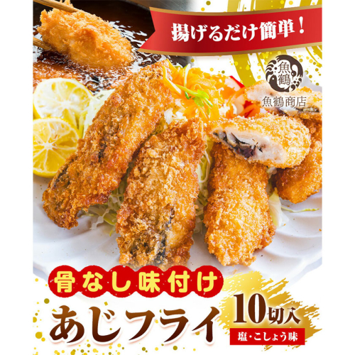 簡単!揚げるだけ!骨なし味付け あじフライ 10切 (塩・こしょう風味) 株式会社 魚鶴商店《30日以内に出荷予定(土日祝除く)》 和歌山県 日高町 あじ アジ 鯵 揚げ物 フライ あじフライ 冷凍 骨取り 送料無料