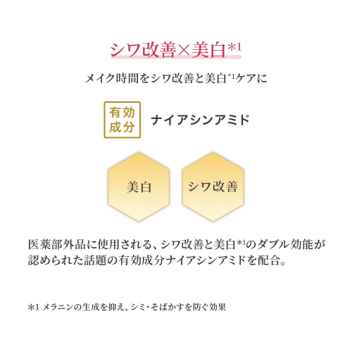 手軽にメイクが出来ながら、シワ改善と美白ケアが出来るので、日中の積極的なエイジングケアも叶えます。