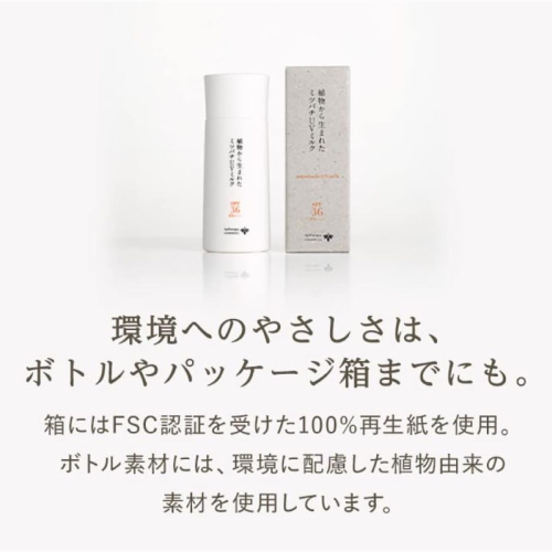 植物成分「フェルラ酸」に着目し、「化学合成の紫外線吸収剤」や「紫外線散乱剤」を一切使用せず、植物の力で紫外線からお肌を守る日焼け止めです。