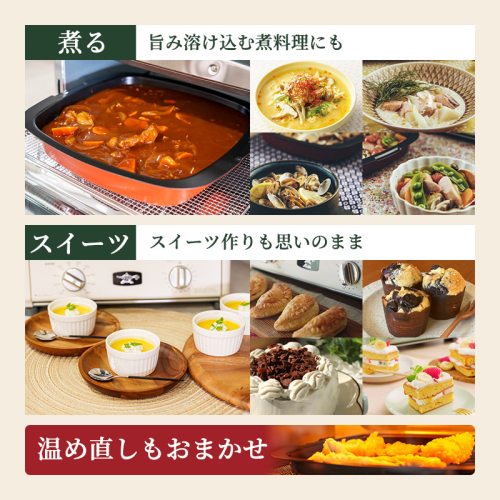 グリル料理、煮込み料理、焼き料理などお料理のバリエーションを広げるグリルパン付。