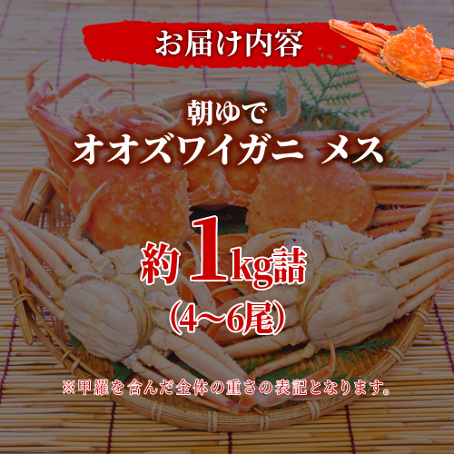 北海道産【朝ゆで】訳ありオオズワイガニ メス(小) 1.0kg詰 子持ち 内子 外子 道産品 オオズワイ ズワイガニ ずわい蟹 カニ 蟹 規格外品 不揃い 訳アリ 訳有り