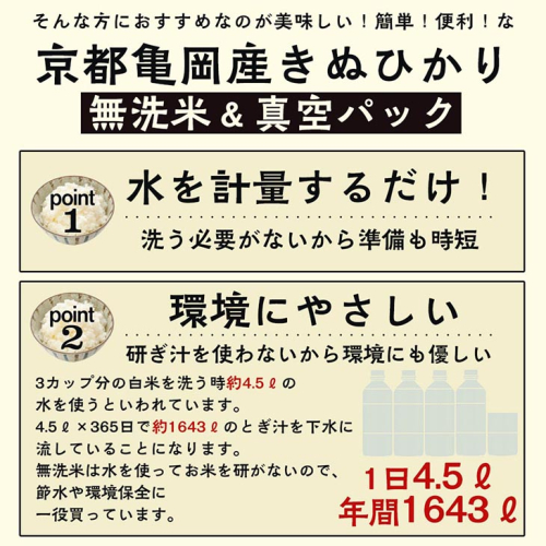 無洗米 6kg (2kg×3) 真空パック 京都丹波産 キヌヒカリ[令和7年産米] ※受注精米 《米 白米 きぬひかり 6キロ 小分け 無洗米 大嘗祭供納品種 亀岡そだち》 ※北海道・沖縄・離島への配送不可