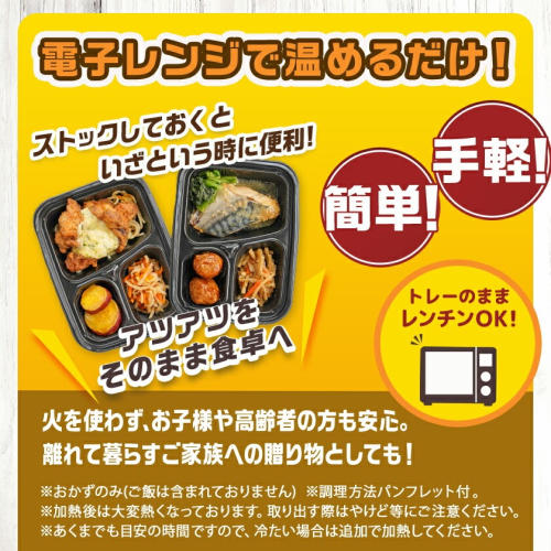 おかずのみをお届けしますので、あつあつのご飯とお召し上がりください。