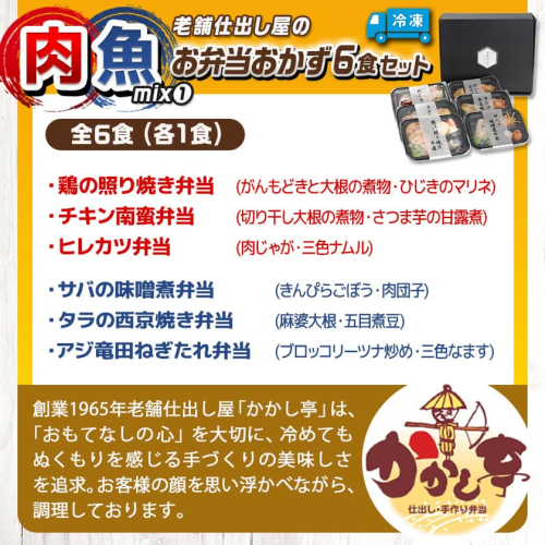 1965年に創業した老舗仕出し屋「かかし亭」が作る、お肉と魚の贅沢な詰め合わせ6種のお弁当セットをご用意しました。