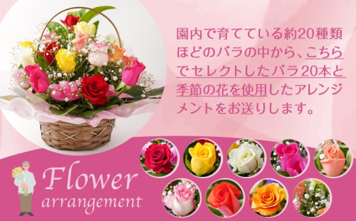 【母の日ギフト対象品】 ~2026年の母の日は5月10日(日)です♪~ フラワーギフトで人気のバラは、華やかな気品ある美しさで多くの人の心を魅了します。 今年の母の日は、日頃の感謝を込めて「とっておき」なバラの贈り物はいかがですか。 矢野バラ園が品質にこだわり一本一本丹念に育てました。 鮮度が良く、長持ちするフラワーギフトを産地直送でお届けします。 バラ20本と季節の花(カスミソウ、ブルーファンタジア、スイートピーなど)を使用した華やかなアレンジメントです。 【決済について】 ・2026年4月30日(木)までのオンライン決済限定です。 【お届け先について】 ・贈り主は寄附者様のお名前でお届けいたします。(※お届け先と寄附者様のお名前が異なる場合のみ) ・お申し込みの際は、配送情報の入力にご注意ください。