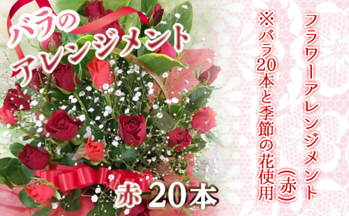 【母の日ギフト対象品】 ~2026年の母の日は5月10日(日)です♪~ フラワーギフトで人気のバラは、華やかな気品ある美しさで多くの人の心を魅了します。 今年の母の日は、日頃の感謝を込めて「とっておき」なバラの贈り物はいかがですか。 矢野バラ園が品質にこだわり一本一本丹念に育てました。 鮮度が良く、長持ちするフラワーギフトを産地直送でお届けします。 こちらはバラ20本と季節の花(カスミソウ、ブルーファンタジア、スイートピーなど)を使用した赤系の華やかなアレンジメントです。 【決済について】 ・2026年4月30日(木)までのオンライン決済限定です。 【お届け先について】 ・贈り主は寄附者様のお名前でお届けいたします。(※お届け先と寄附者様のお名前が異なる場合のみ) ・お申し込みの際は、配送情報の入力にご注意ください。