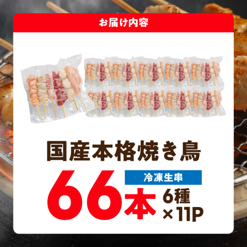 国産鶏の焼き鳥(冷凍生串) 6本(6種)入り×11P