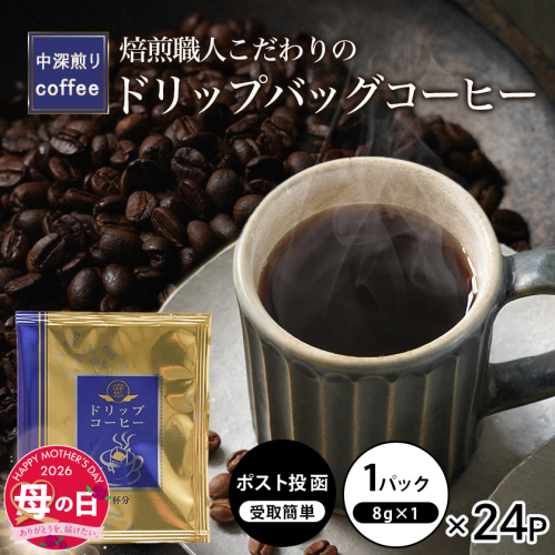 【母の日】焙煎職人こだわりのドリップバッグコーヒー(中深煎り)24P※ポスト投函≪5月7日~10日お届け≫_LC-3306-MG