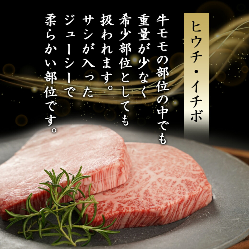 牛モモの部位の中でも、重量が少なく希少部位としても扱われる「ヒウチ・イチボ」をステーキカットでお届けします。