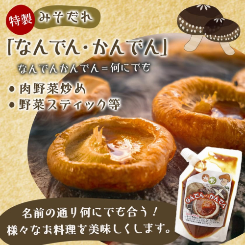 特製みそだれ「なんでんかんでん」付きで、肉厚のしいたけを焼いて合わせれば相性抜群!