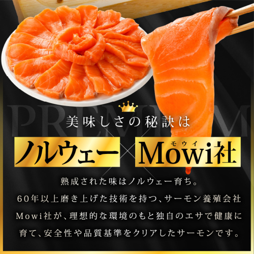 サーモンの養殖を60年以上行い、技術を磨き上げたノルウェーのMowi社は、色、品質、脂のりなどの基準をクリアしたもののみを提供します。