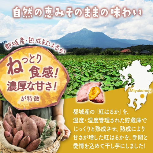 都城産の「紅はるか」を、温度・湿度管理された貯蔵庫でじっくりと熟成させました。熟成により甘さが増した紅はるかは、自然の恵みそのままの味わいと手間と愛情を込めた、自信の逸品です。