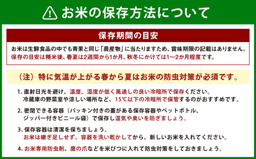 ※お米は臭いや湿気を吸いやすい食品です。特に臭いの強い食品・洗剤・灯油などのそばに置かないでください。