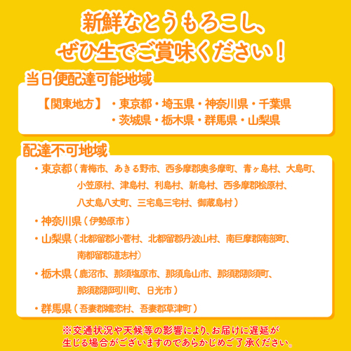 ※生ものですので天候により、とうもろこしの生育状況が変わってきます。大きさが小さい場合は本数が多くなる場合もあります。