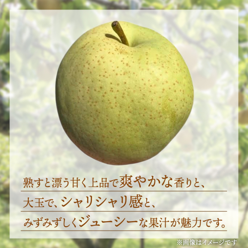 一般的な梨よりも一回り大きく、青梨特有のシャリシャリ感と、みずみずしくジューシーな果汁が魅力です。