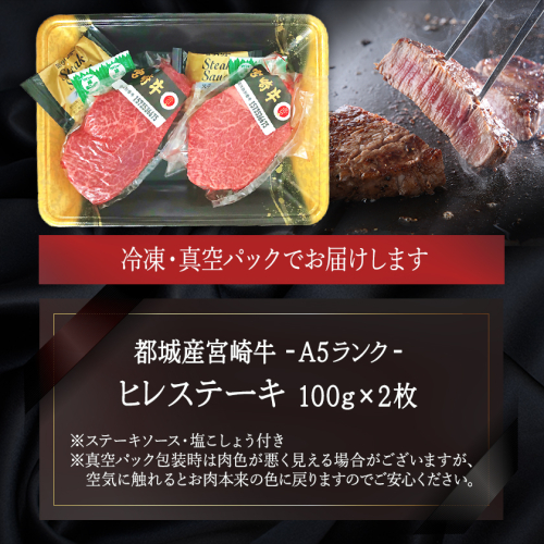 【父の日】宮崎牛ヒレステーキ(A5)100g×2枚≪6月18日~21日お届け≫_18-0103-FG