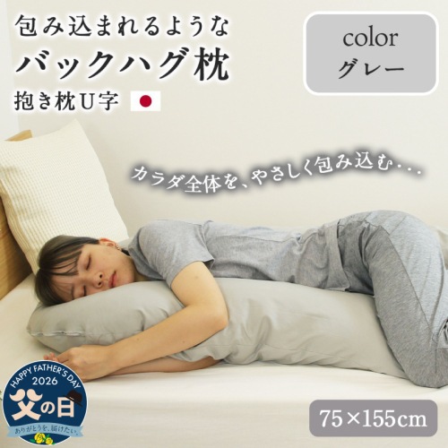 【父の日】【グレー】「バックハグ枕」抱き枕・U字枕~抱かれる安心感 ~≪6月18日~21日お届け≫_14-J202-gr-FG
