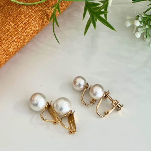 - ・コットンパール【ホワイト】イヤリング2点セット(ゴールド)×2