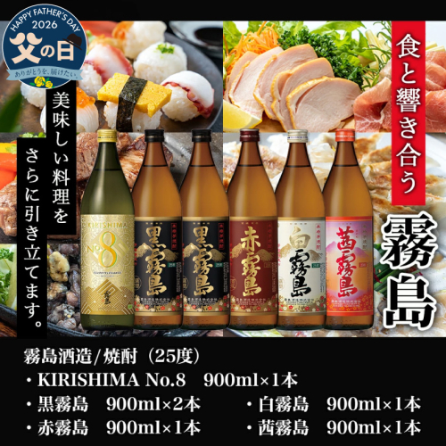 【父の日】【霧島酒造】KIRISHIMA No.8・霧島「黒・赤・白・茜 」(25度)900ml 計6本セット≪6月18日~21日お届け≫_22-0701_35-FG
