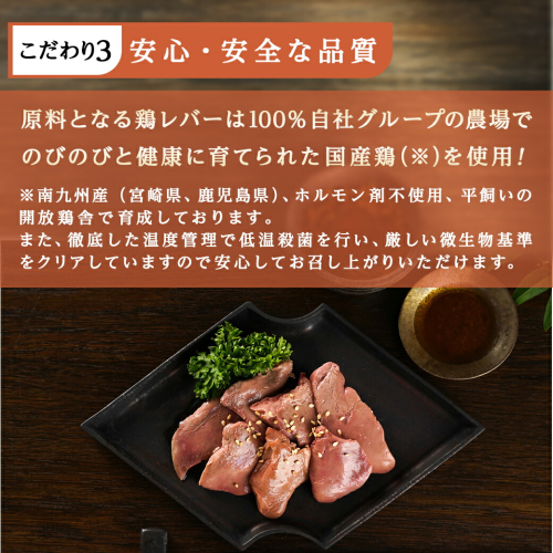 新鮮な朝びきの南九州産鶏レバーのみ使用し、衛生管理を徹底して低温調理しております。