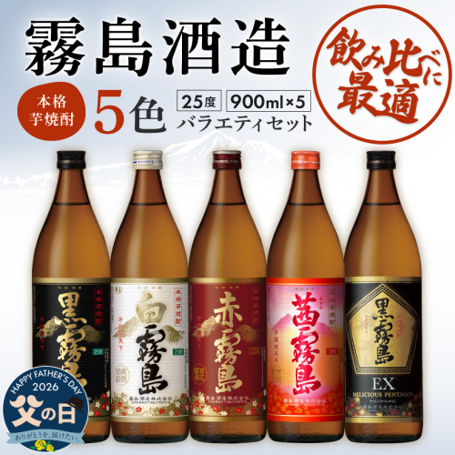 【父の日】霧島酒造(25度)900ml×5色バラエティセット≪6月18日~21日お届け≫_17-3801-FG 2509781 - 宮崎県都城市