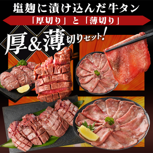 【父の日】牛タン塩麹漬け 厚切り&薄切り1kgセット≪6月18日~21日お届け≫_14-8404-FG