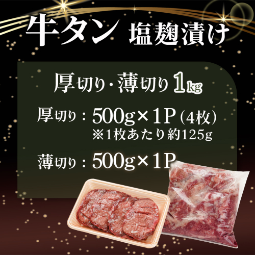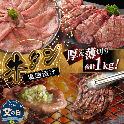 - 【父の日】牛タン塩麹漬け 厚切り&薄切り1kgセット≪6月18日~21日お届け≫_14-8404-FG