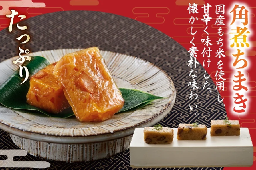 国産もち米を使用し、角煮の煮込みたれで甘辛く味付けした、懐かしく素朴で飽きのこない味わいに仕上げました。