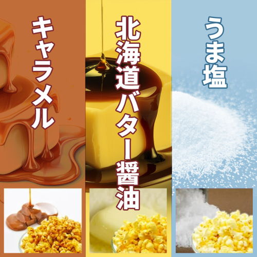 セット内容は、定番の「キャラメル」「うま塩」「バター醤油」。