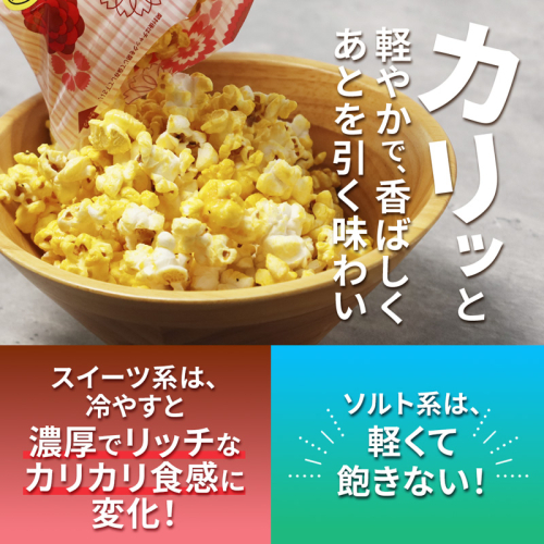 天然素材のやさしい味わい。王道フレーバーからスイーツまで楽しめる、合成着色料不使用のポップコーンセットです。