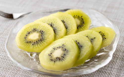 ※キウイを優しく頭の軸とお尻のところを少し押し、へこむくらいの弾力がありますと、食べごろです。