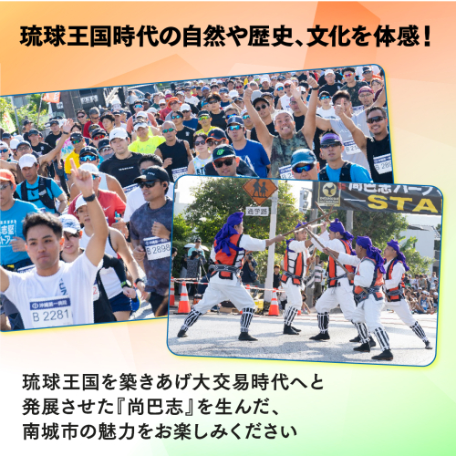- 【沖縄県南城市】第23回 琉球国王 尚巴志ハーフマラソンin南城市を応援! 出走権(1名分) 沖縄県南城市 琉球国王 尚巴志ハーフマラソンin南城市を応援 返礼品 ギフト 沖縄県 南城市 ふるさと納税