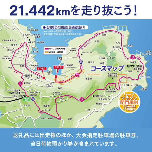 - 第23回 琉球国王 尚巴志ハーフマラソンin南城市 出走権・大会指定駐車場の駐車券・当日荷物預かり券(1名分)