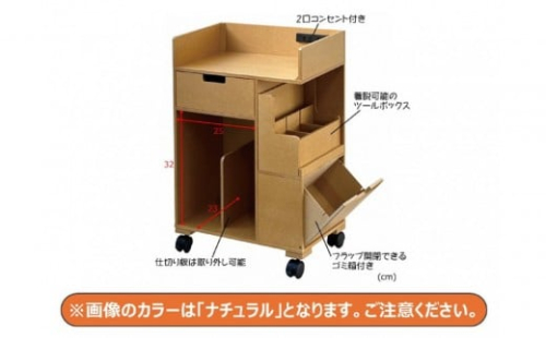 本体右横のツールボックスには文具や小物を収納でき、右下のフラップ扉はゴミ箱として使えます。