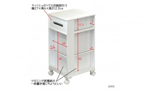 ティッシュボックスやマガジンラックが付いた至れり尽くせりのオシャレなワゴン。
